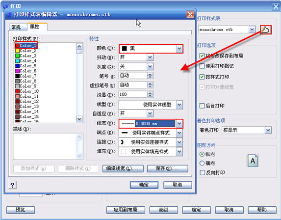 一、颜色相关打印样式表(*.CTB)的使用和编辑
