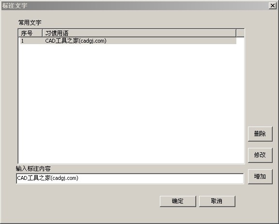 输入标注内容,通过增加,删除,修改可以配置常用的标注文字