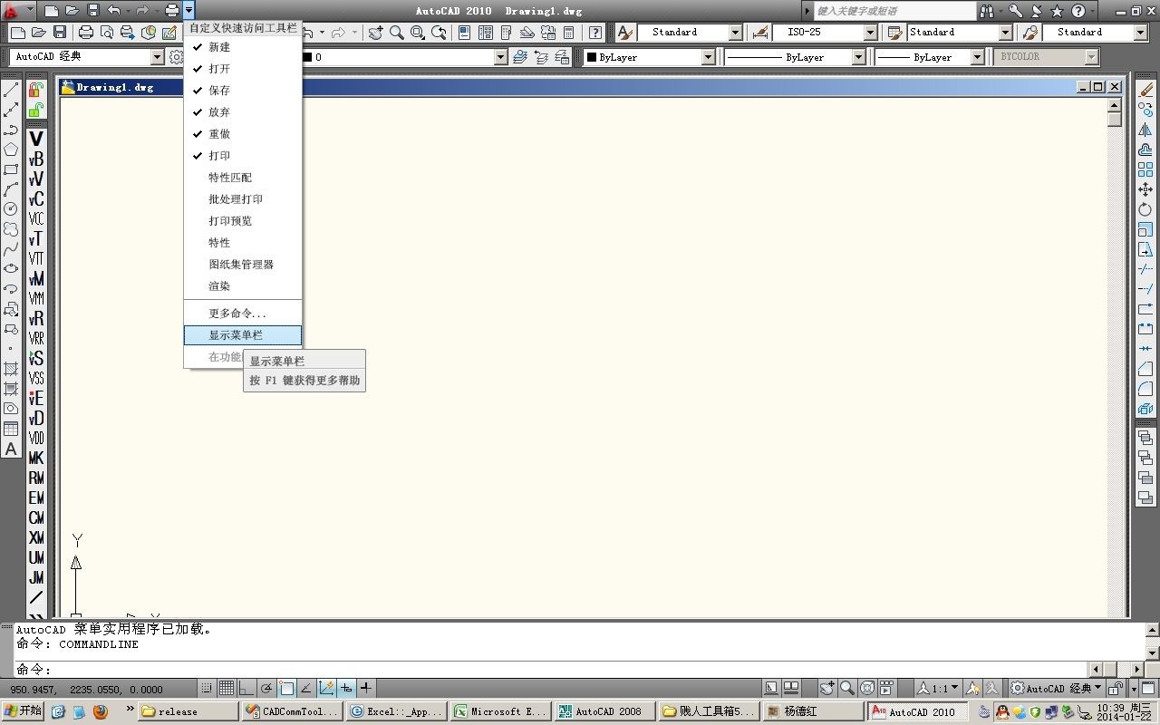 CAD2010以上版本没看到菜单栏怎么办?