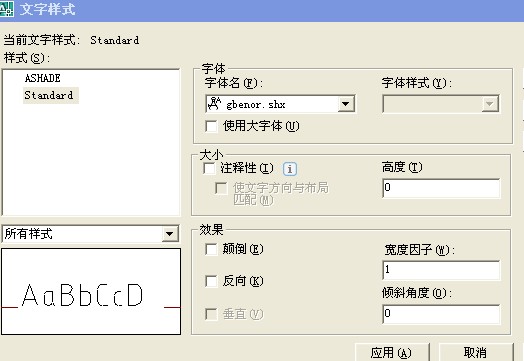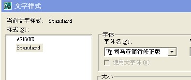 第二步:写入文字,然后输入st命令,选择standard样式,把使用大字体的勾去掉。如图: