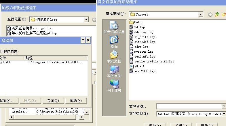 然后保存文件, 把你的扩展程序放到C:\Program Files\AutoCAD 2008\Support目录下,打开cad,然后输入ap,点内容,出现如图