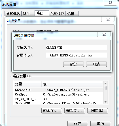 用于编译时JAVA类的路径,注意这里设置的是两个值,(.;)表示的是JVM先搜索当前目录。其值为:.;%JAVA_HOME%\lib\tools.jar。