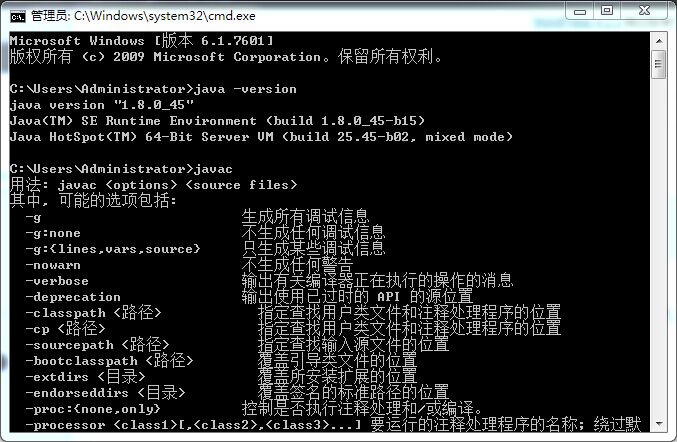 配置完毕后,通过cmd运行以下命令:java -version,javac 如果出现返回信息,则设置成功。