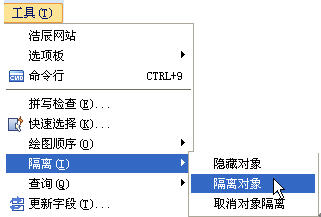 为此,利用对象隐藏、隔离功能,只需选定操作对象及范围后,在下拉菜单中后右键菜单中选择隔离的相关命令,就可以将部门图形暂时隐藏。