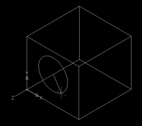 假设我们要在一个方体的侧面上画一个圆柱,我们就需要将UCS定义到方体的侧面上,操作非常简单,输入UCS命令,回车,输入F (面) 选项,然后在图中选择方体的一个侧面,如下图所示: